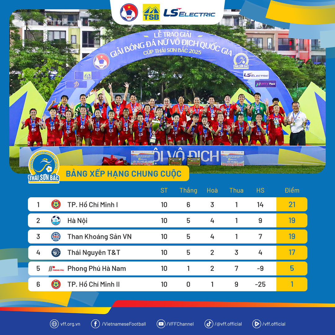 BẢNG XẾP HẠNG CHUNG CUỘC 13/10/2025 20:12:21 Bóng đá nữ Giải Nữ Vô địch Quốc gia Bảng xếp hạngTin liên quan XẾP HẠNG SAU LƯỢT 9 XẾP HẠNG SAU LƯỢT 8 XẾP HẠNG SAU LƯỢT 7 XẾP HẠNG SAU LƯỢT 6 XẾP HẠNG SAU LƯỢT 5