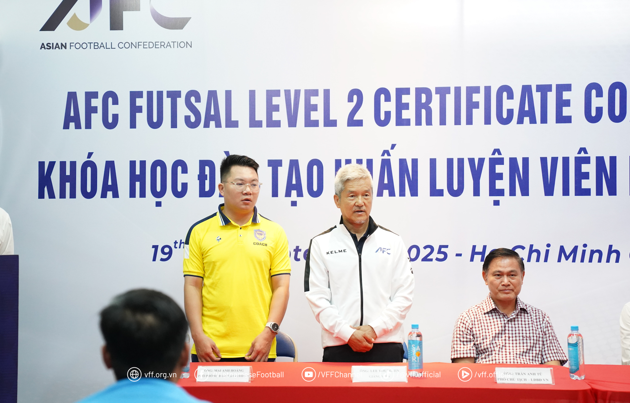 Đại diện lãnh đạo LĐBĐVN, Phó Chủ tịch LĐBĐVN Trần Anh Tú bày tỏ sự trân trọng đối với sự đồng hành của giảng viên Lee Young Jin, đồng thời gửi lời chúc mừng đến đội tuyển futsal Hàn Quốc với những kết quả ấn tượng tại vòng loại châu Á vừa qua. Phó chủ tịch Trần Anh Tú cũng chia sẻ về vai trò quan trọng của đội ngũ HLV futsal trong nước, khẳng định ngoài kiến thức, các HLV cần trau dồi tư duy, ngoại ngữ và tinh thần chuyên nghiệp để đáp ứng yêu cầu ngày càng cao, qua đó khẳng định vị thế của futsal Việt Nam trên đấu trường quốc tế.
