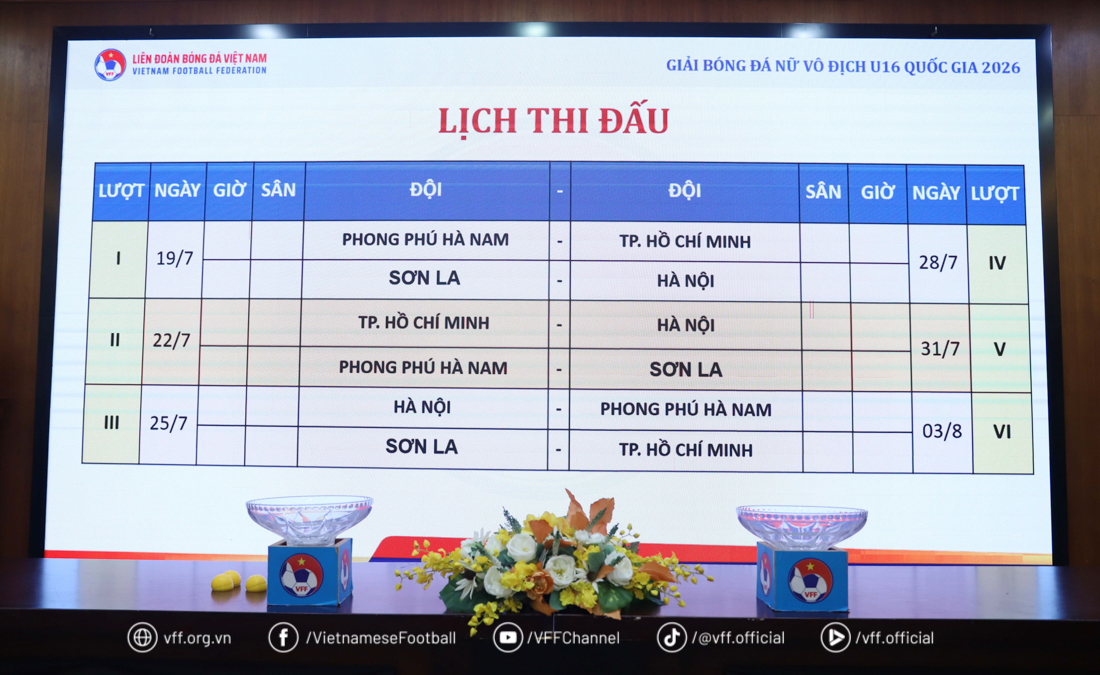 Bốc thăm xếp lịch thi đấu Giải bóng đá U16 nữ VĐQG 2026