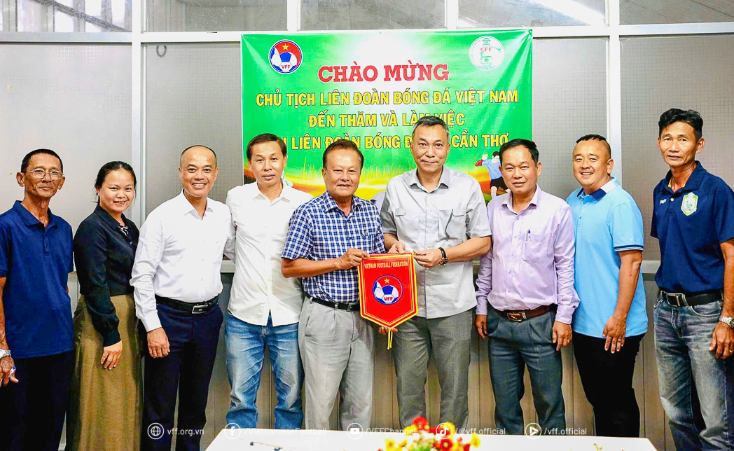 Chiều 17/9, đoàn công tác Liên đoàn Bóng đá Việt Nam (LĐBĐVN) do Chủ tịch Trần Quốc Tuấn dẫn đầu đã có buổi thăm và làm việc với Liên đoàn Bóng đá thành phố Cần Thơ. Cùng tham gia đoàn công tác có ông Nguyễn Hiền Lương – Trưởng Ban Kiểm tra LĐBĐVN, ông Lưu Quang Điện Biên – Trưởng phòng Bóng đá phong trào, Đào tạo & Tổ chức thành viên và đại diện các phòng chức năng LĐBĐVN.