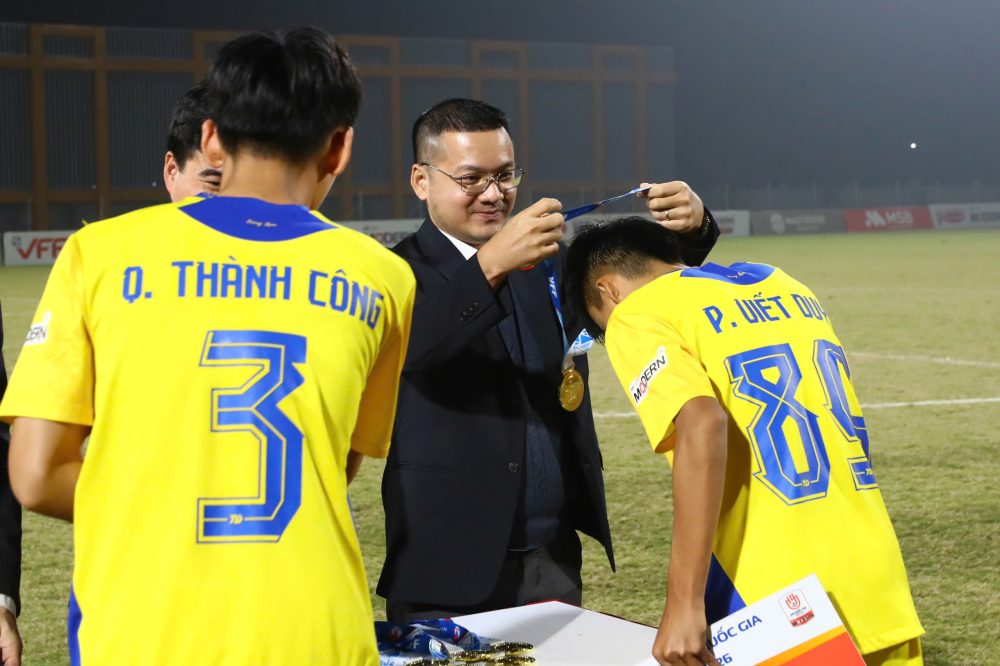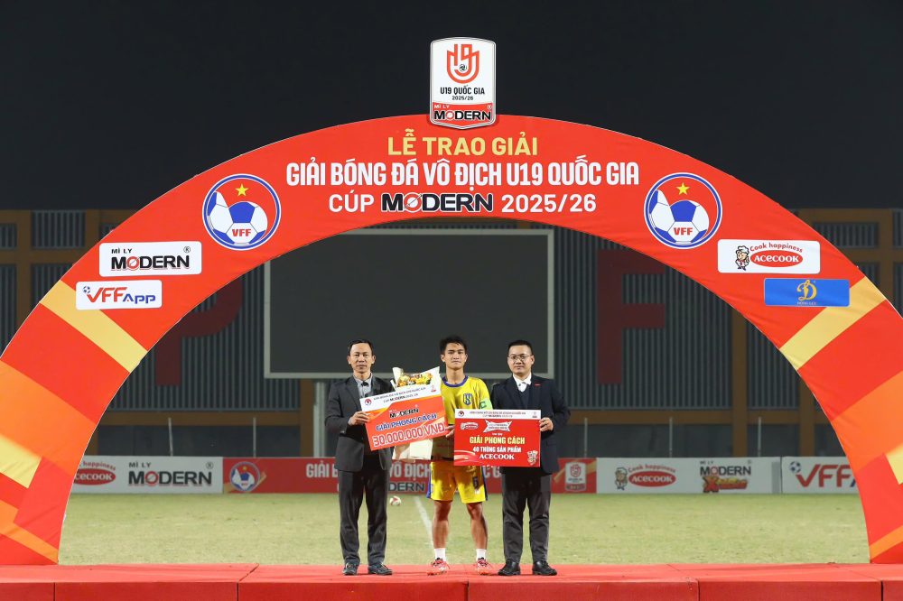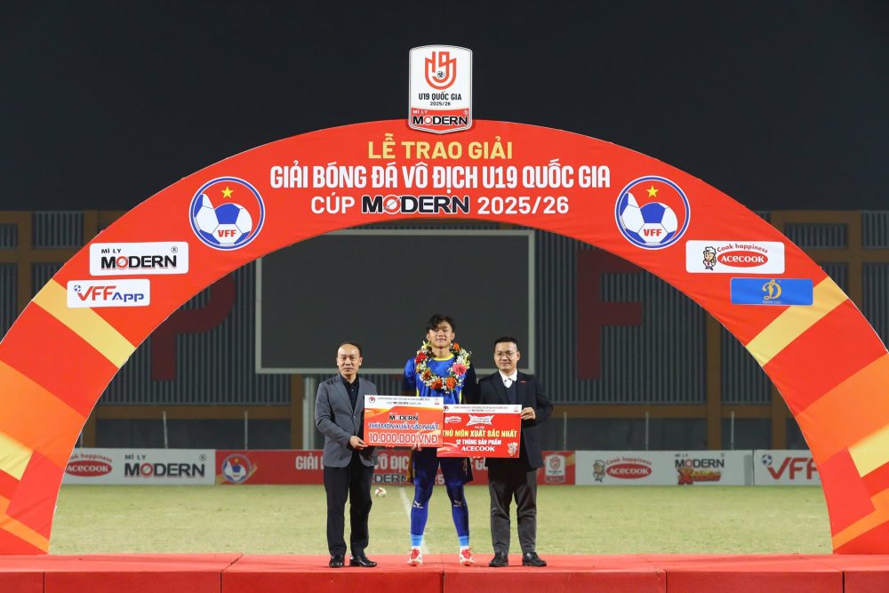 Sau trận chung kết đầy kịch tính chứng kiến U19 Sông Lam Nghệ An lên ngôi vô địch giải bóng đá U19 quốc gia – Cúp Modern 2025/26, ban tổ chức đã tiến hành trao các giải thưởng tại Trung tâm đào tạo bóng đá trẻ PVF (Hưng Yên).