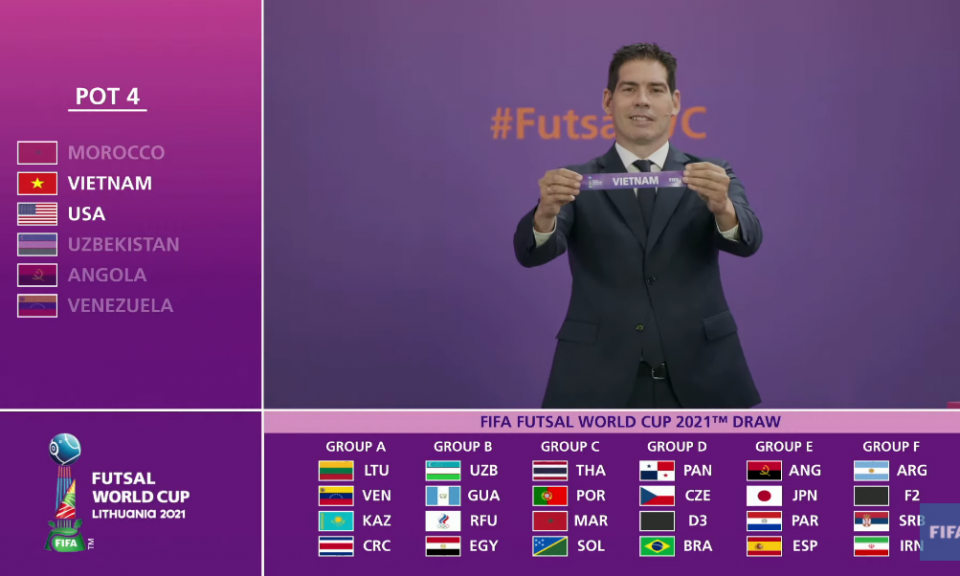 22h00 tối nay (1/6) theo giờ Việt Nam, FIFA đã tiến hành bốc thăm chia bảng, xếp lịch thi đấu cho 24 đội tuyển giành quyền tham dự VCK FIFA Futsal World Cup 2021. Kết quả, lá thăm may rủi đã đưa ĐT Việt Nam vào bảng D cùng với Brazil, Cộng hòa Séc và Panama.