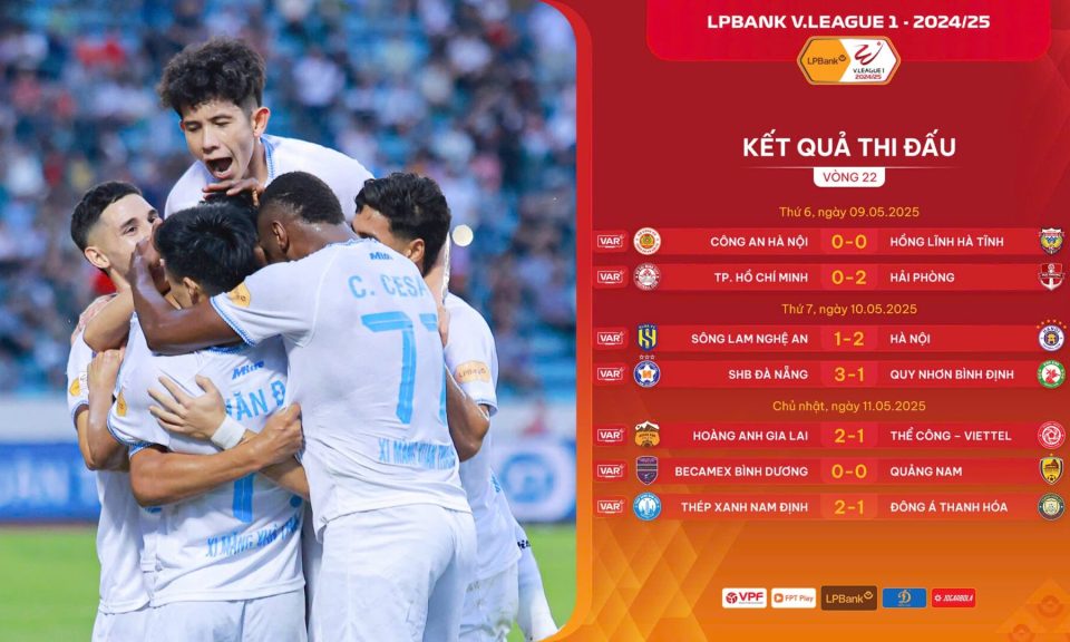 Cuộc đua vô địch và cuộc chiến trụ hạng đều chứng kiến những diễn biến cực kỳ căng thẳng sau khi kết thúc vòng 22 LPBank V.League 1-2024/25.