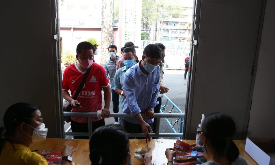 Trong buổi mở bán vé đầu tiên vào sang 14/4, hàng trăm khán giả đã xếp hàng trật tự trước cửa chính sân Thống Nhất để mua vé vào xem trận đầu tiên của HAGL ở vòng bảng AFC Champions League.