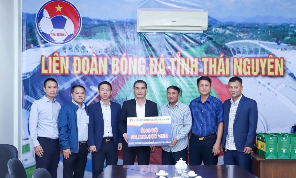 Sáng 5/11, đoàn công tác của LĐBĐVN do ông Nguyễn Quốc Hội – Ủy viên Thường trực Ban Chấp hành LĐBĐVN – dẫn đầu đã đến thăm hỏi, động viên và trao quà ủng hộ nhằm hỗ trợ LĐBĐ tỉnh Thái Nguyên khắc phục hậu quả sau đợt bão lũ vừa qua. Tham gia đoàn công tác có ông Nguyễn Minh Châu – Phó Tổng thư ký LĐBĐVN, ông Lưu Quang Điện Biên – Trưởng phòng Đào tạo, Bóng đá phong trào và Tổ chức thành viên LĐBĐVN, cùng đại diện một số phòng chức năng của LĐBĐVN.