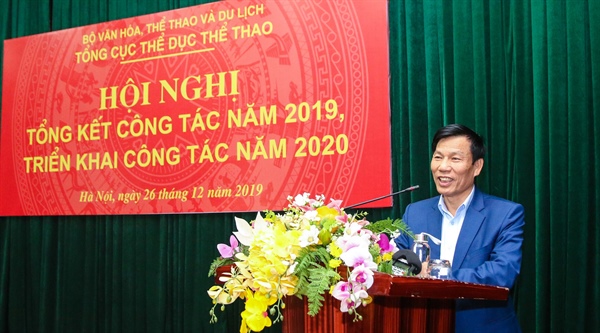 VHO- Sáng 26.12, Hội nghị tổng kết công tác năm 2019, triển khai công tác năm 2020 của Tổng cục TDTT đã được tổ chức tại Hà Nội. Bộ trưởng Bộ VHTTDL Nguyễn Ngọc Thiện đã tới dự và phát biểu chỉ đạo Hội nghị.