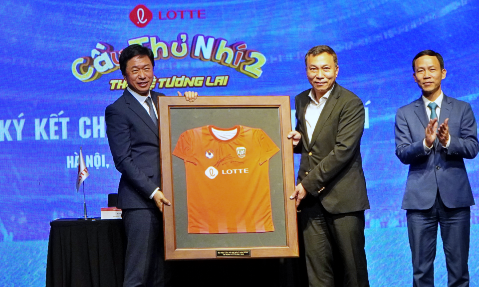 Chiều nay (21/8), LĐBĐVN và Tập đoàn LOTTE đã ký kết hợp tác phát triển chương trình thực tế “Cầu Thủ Nhí” năm 2024, nhằm mục đích phát triển tài năng bóng đá trẻ Việt Nam, đóng góp chung vào sự phát triển của bóng đá Việt Nam.