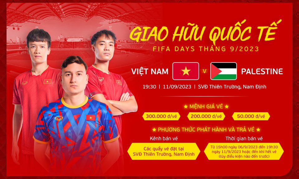 THÔNG BÁO BÁN VÉ TRẬN GIAO HỮU QUỐC TẾ GIỮA ĐỘI TUYỂN VIỆT NAM VÀ ĐỘI TUYỂN PALESTINE