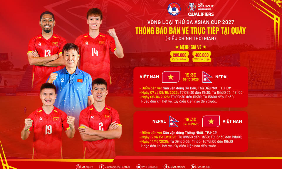 Thông báo bán vé hai trận đấu giữa ĐT Việt Nam vs ĐT Nepal tại Vòng loại cuối Asian Cup 2027