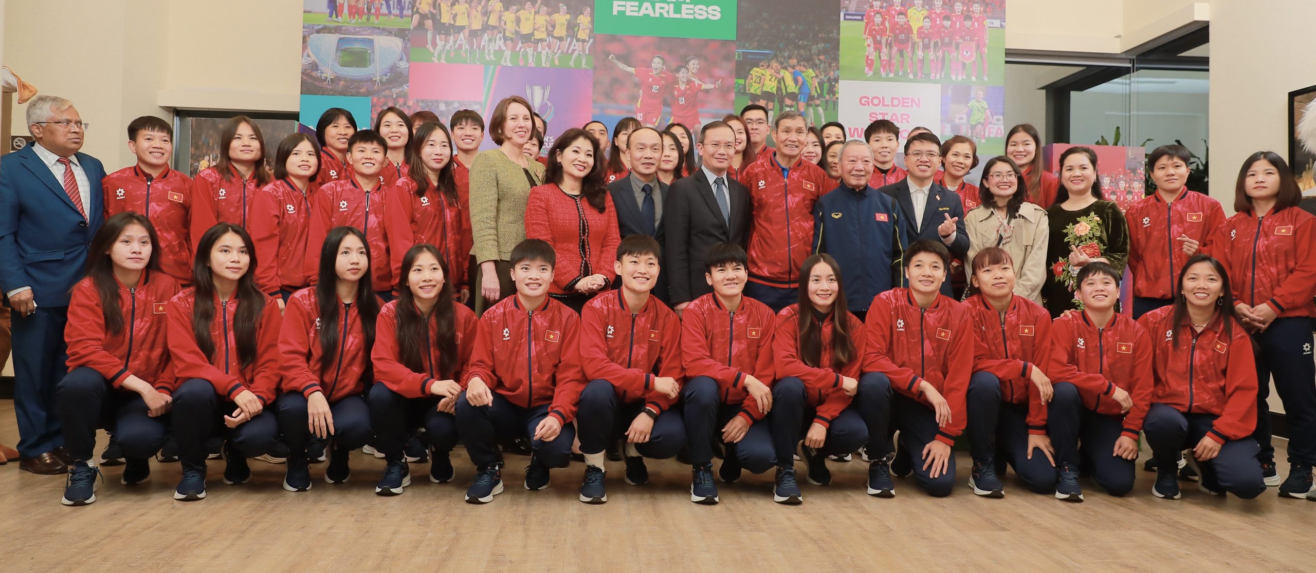 Thay mặt Liên đoàn Bóng đá Việt Nam, ông Nguyễn Văn Phú – Tổng Thư ký LĐBĐVN – trân trọng cảm ơn Đại sứ quán Australia đã dành cho Đội tuyển nữ Việt Nam sự đón tiếp nồng hậu, chu đáo và đầy thiện chí trước thềm Vòng chung kết Giải vô địch bóng đá nữ châu Á 2026.