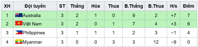 Sau khi giành 2 chiến thắng để có 6 điểm tại bảng B, đội tuyển futsal nữ Việt Nam vẫn phải chờ kết quả trận đấu còn lại giữa Australia và Philippines mới xác định được tấm vé vào bán kết Giải futsal nữ vô địch Đông Nam Á 2026. Kết quả hòa 1-1 giữa hai đối thủ này đã chính thức đưa thầy trò HLV Nguyễn Đình Hoàng vào vòng knock-out với vị trí nhì bảng.