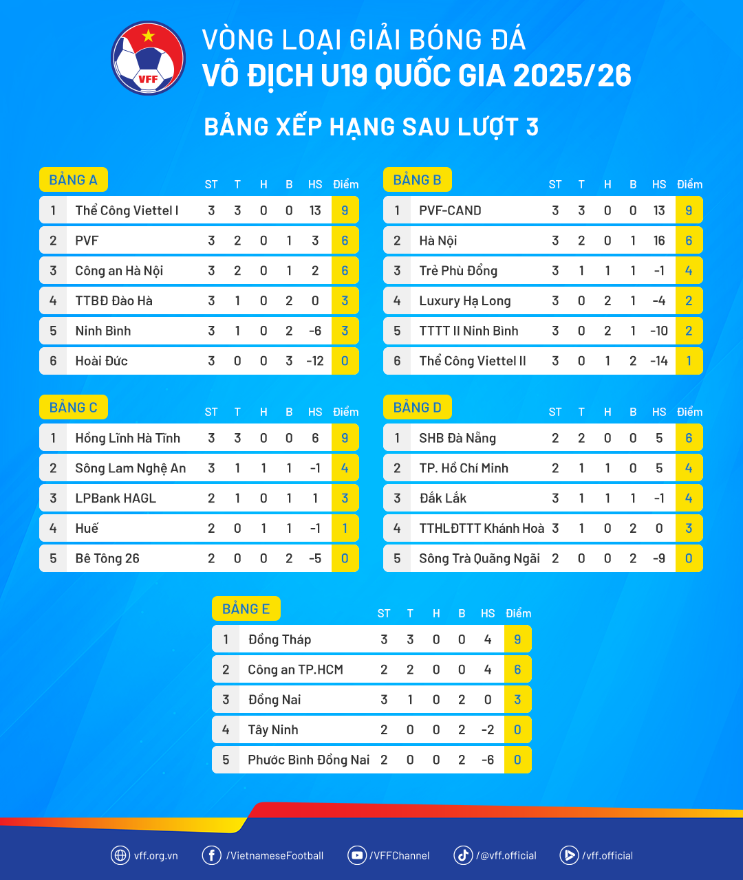 KẾT QUẢ CHI TIẾT CÁC TRẬN ĐẤU LƯỢT 3 (Ngày 19/12/2025)