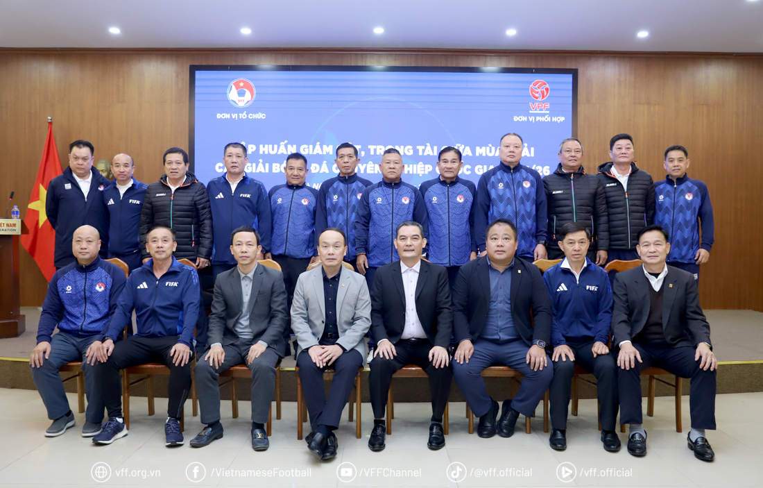 Chiều 26/1, tại trụ sở LĐBĐVN đã diễn ra lễ khai mạc Chương trình tập huấn đợt 1 Giám sát, Trọng tài giữa mùa giải các Giải Bóng đá Chuyên nghiệp Quốc gia 2025/26, do LĐBĐVN và Công ty Cổ phần Bóng đá Chuyên nghiệp Việt Nam (VPF) phối hợp tổ chức.