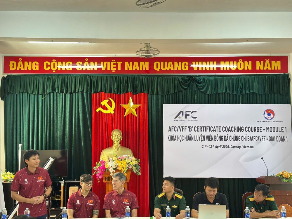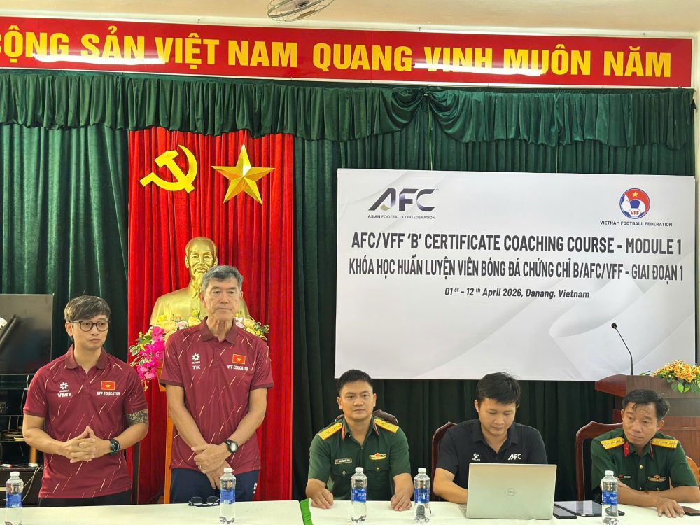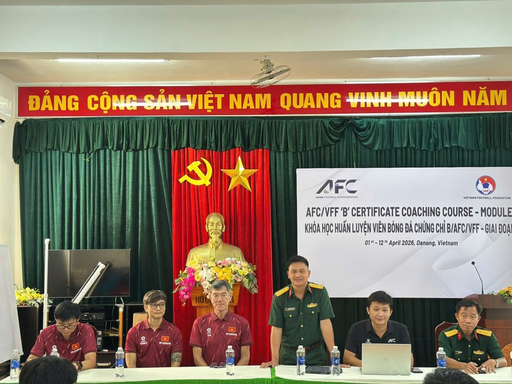 Chiều nay, khóa học huấn luyện viên chứng chỉ “B” AFC/VFF – giai đoạn 1 đã chính thức khai mạc tại Hội trường Trung tâm Thể dục Thể thao Quốc phòng 3 (TP. Đà Nẵng). Khóa học diễn ra từ ngày 1 đến 12/4/2026.