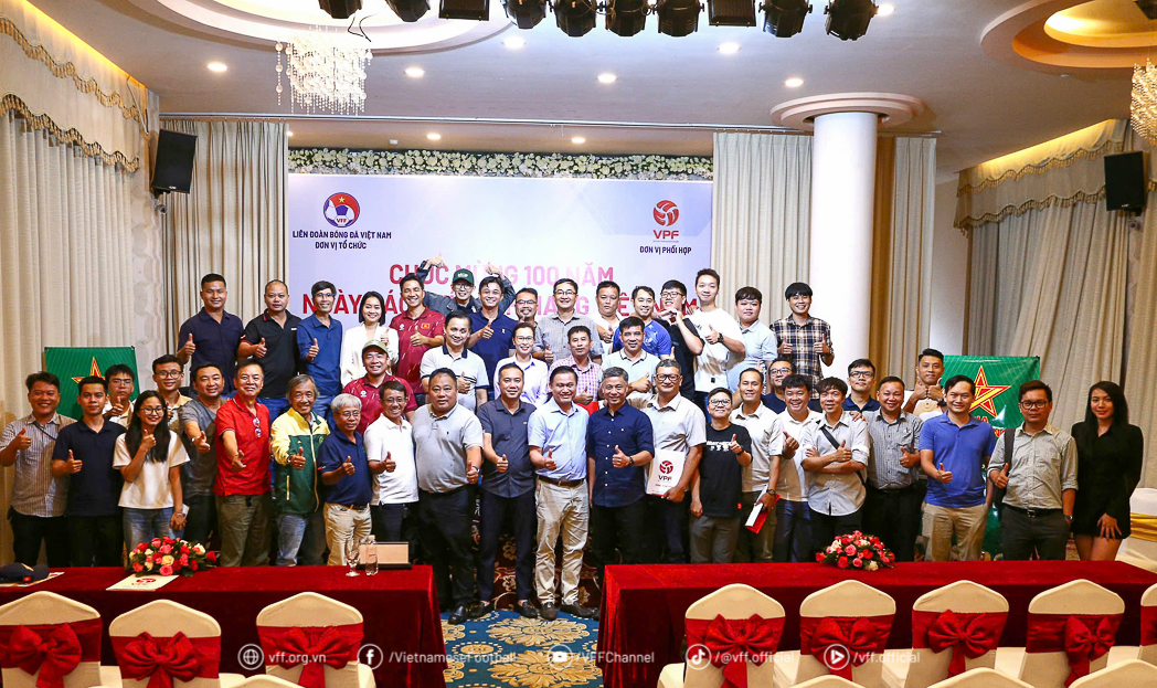Chiều 20/6, nhân dịp kỷ niệm 100 năm Ngày Báo chí Cách mạng Việt Nam (21/6/1925 – 21/6/2025), Liên đoàn Bóng đá Việt Nam (LĐBĐVN) phối hợp cùng Công ty Cổ phần Bóng đá Chuyên nghiệp Việt Nam (VPF) tổ chức buổi gặp mặt, chúc mừng các phóng viên thể thao khu vực phía Nam.