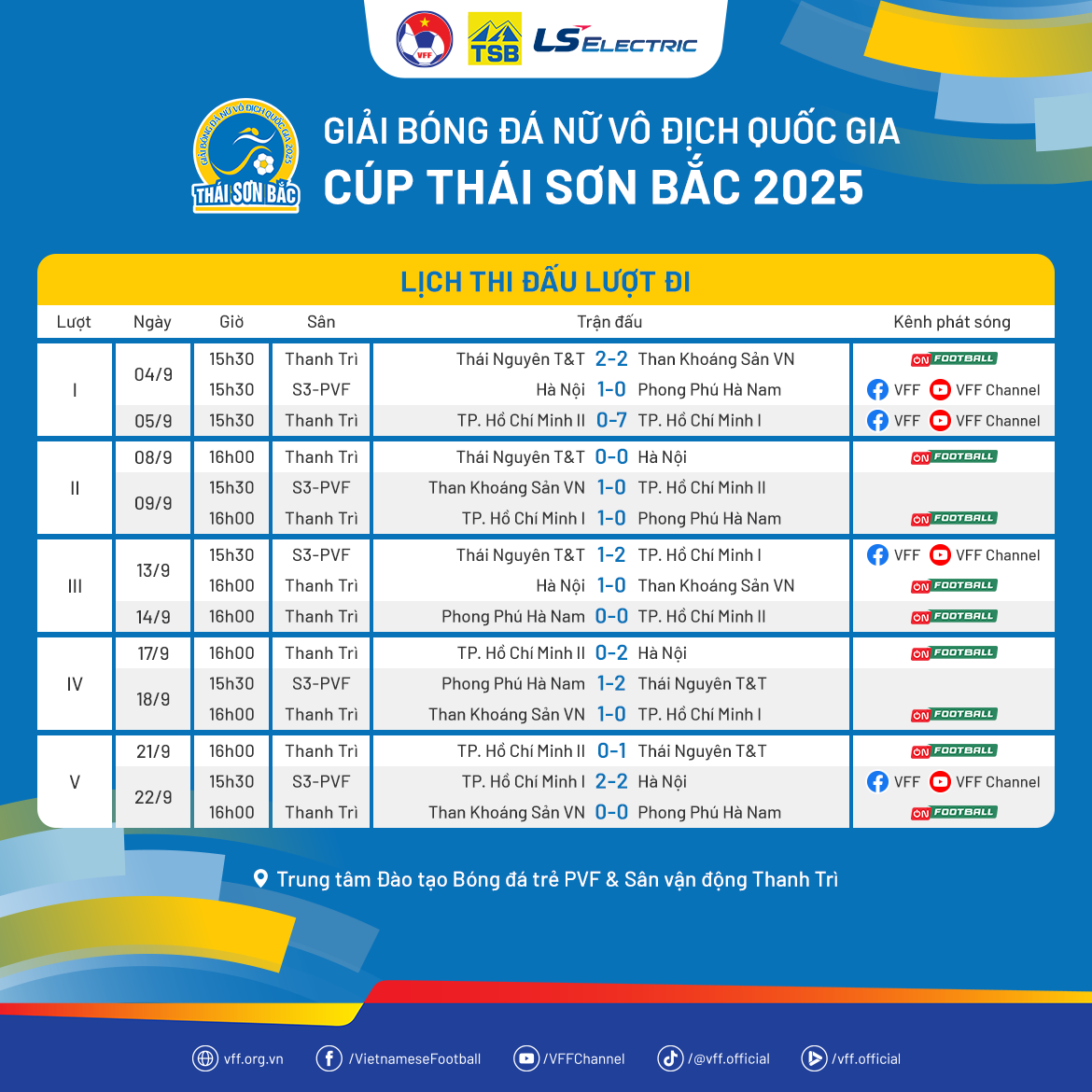 Lịch thi đấu giải bóng đá Nữ Vô địch quốc gia – Cúp Thái Sơn Bắc 2025 29/08/2025 16:16:45 Bóng đá nữ Giải Nữ Vô địch Quốc gia Lịch thi đấu Tin liên quan LỊCH THI ĐẤU LƯỢT VỀ GIẢI BÓNG ĐÁ NỮ VĐQG – CÚP THÁI SƠN BẮC 2024 LỊCH THI ĐẤU LƯỢT ĐI GIẢI BÓNG ĐÁ NỮ VĐQG – CÚP THÁI SƠN BẮC 2024 LỊCH THI ĐẤU LƯỢT VỀ GIẢI BĐ NỮ VĐQG – CÚP THÁI SƠN BẮC 2023 LỊCH THI ĐẤU LƯỢT ĐI GIẢI BÓNG ĐÁ NỮ VĐQG – CÚP THÁI SƠN BẮC 2023 LỊCH THI ĐẤU GIẢI BÓNG ĐÁ NỮ VÔ ĐỊCH QUỐC GIA – CÚP THÁI SƠN BẮC 2022