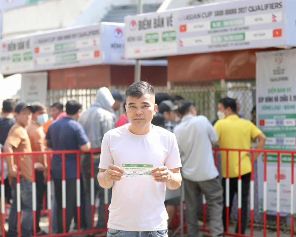 Thậm chí, có nhiều khán giả xếp hàng từ 6h sáng, đợi hơn 3 tiếng đồng hồ để mua được vé. Vui mừng và hạnh phúc, là những gì thể hiện rõ trên khuôn mặt của những cổ động viên may mắn sở hữu những tấm vé đầu tiên sau khi VFF mở bán.