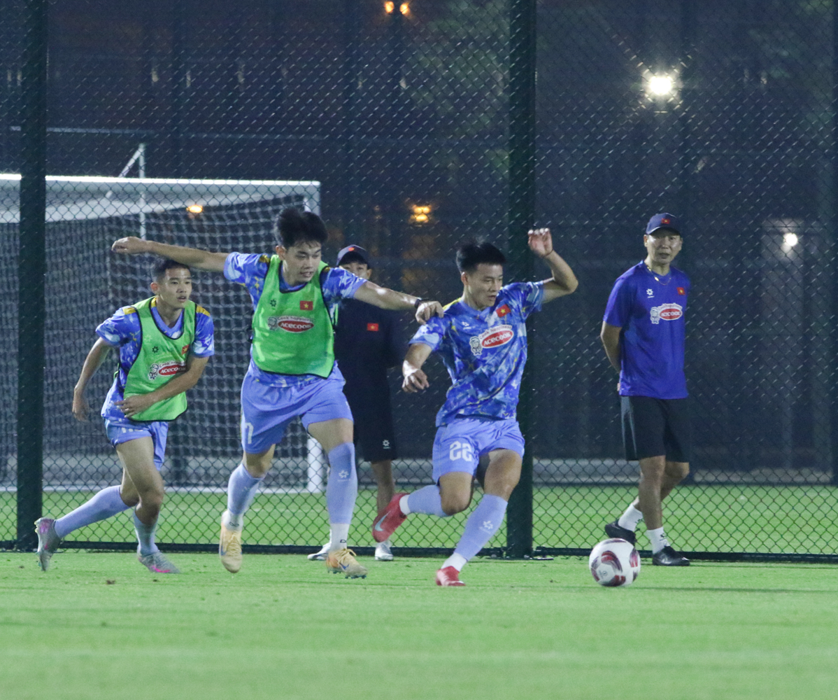 Trong buổi tập kéo dài gần 2 tiếng, HLV Kim Sang Sik cùng các cộng sự đã chủ động đẩy cao khối lượng vận động lên mức tối đa, nhằm giúp các cầu thủ nhanh chóng giải phóng sức ỳ, đồng thời tăng tốc quá trình thích nghi với điều kiện thời tiết và múi giờ tại Qatar. Các cầu thủ đều nỗ lực hoàn thành trọn vẹn giáo án và cố gắng đáp ứng các yêu cầu của BHL.