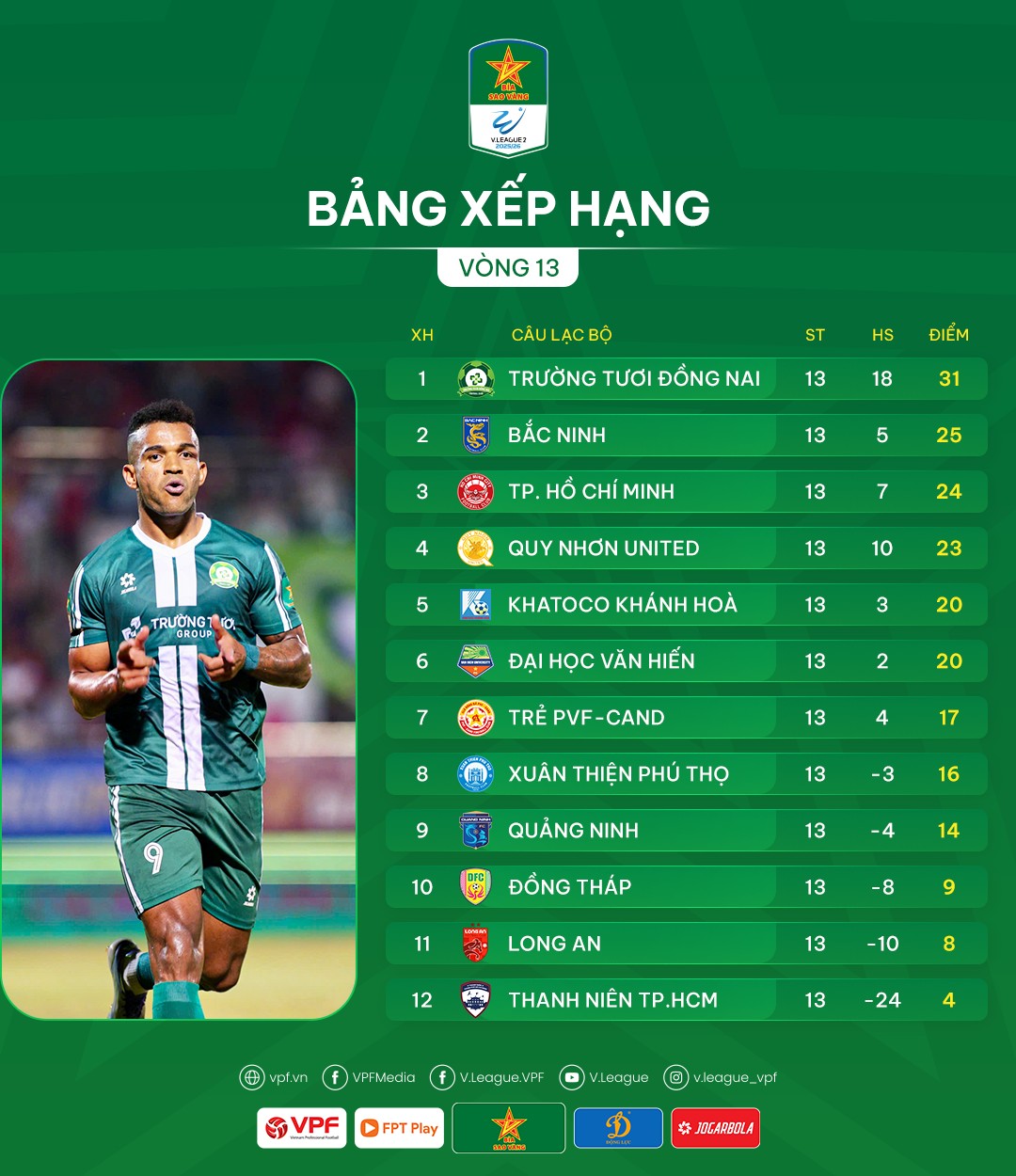 Nhưng vị trí thứ 2 của CLB Bắc Ninh lại rất mong manh trước sức bám đuổi của hai cái tên đáng chú ý là CLB TP.HCM và CLB Quy Nhơn United. CLB TP.HCM, sau vòng 13, chỉ kém CLB Bắc Ninh 1 điểm trên BXH (24 điểm so với 25 điểm). CLB TP.HCM có lối chơi khó chịu và hiệu quả, luôn là thách thức lớn cho các đối thủ trên đường đua. Trong khi đó, CLB Quy Nhơn United (23 điểm) đang có những bước chạy mạnh mẽ để tiến vào cuộc đua tốp 3 (tạm xếp vị trí thứ 4). Chỉ một trận thắng-thua của nhóm này, vị trí sẽ thay đổi.