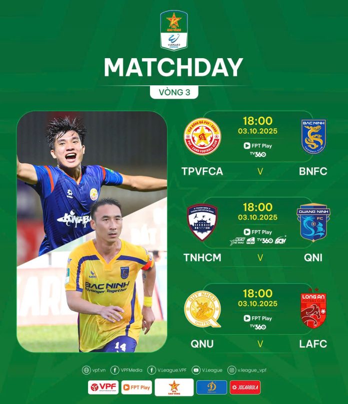 Các trận đấu của vòng 3 Giải HNQG Bia Sao Vàng 2025/26 diễn ra chiều nay (3/10):