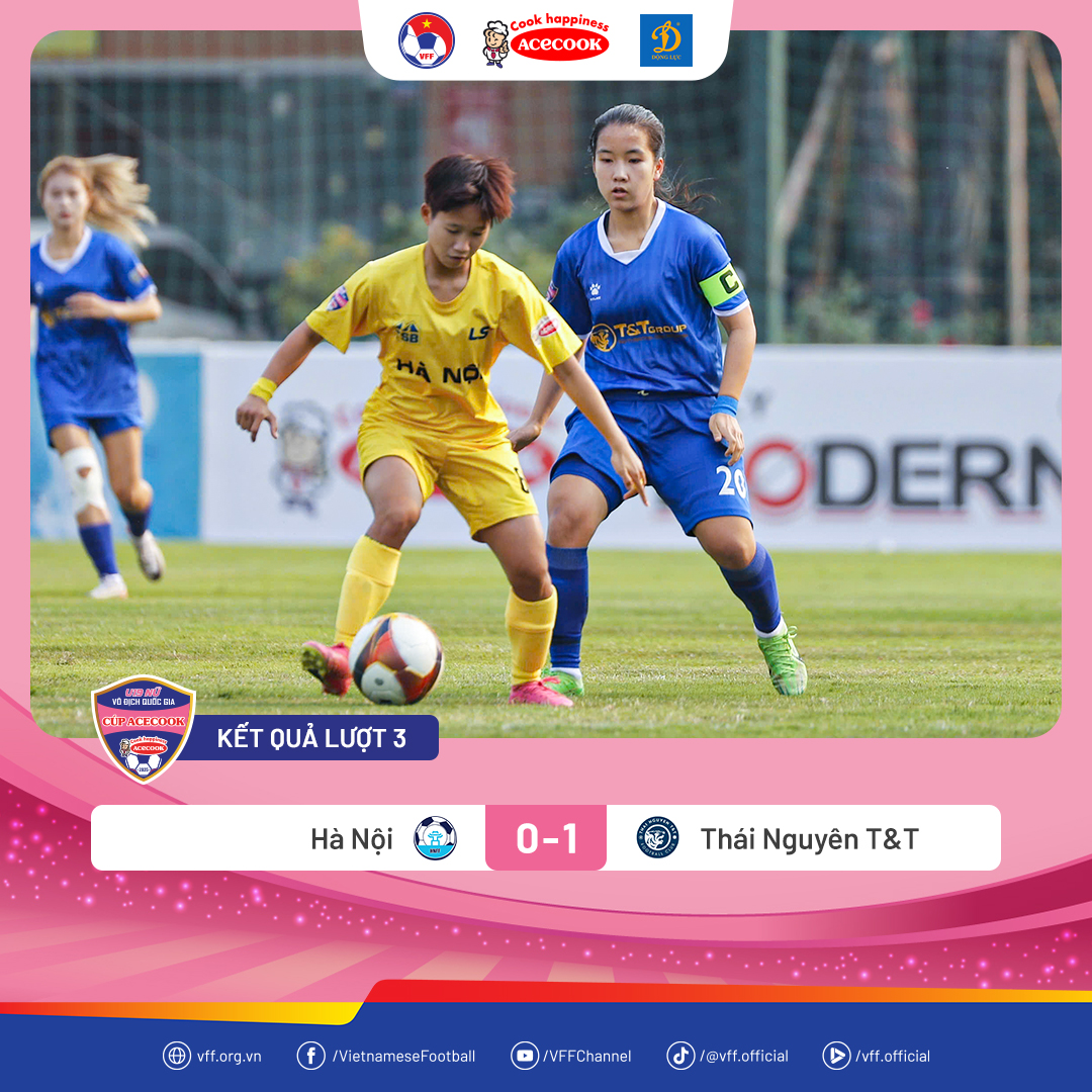 Không thể tận dụng các cơ hội tạo ra, Hà Nội chấp nhận thất bại tối thiểu 0-1. Kết quả này giúp Thái Nguyên T&T có được chiến thắng quan trọng và tạo thêm sức nóng cho cuộc đua tại Giải bóng đá nữ Vô địch U19 Quốc gia – Cúp Acecook 2026.