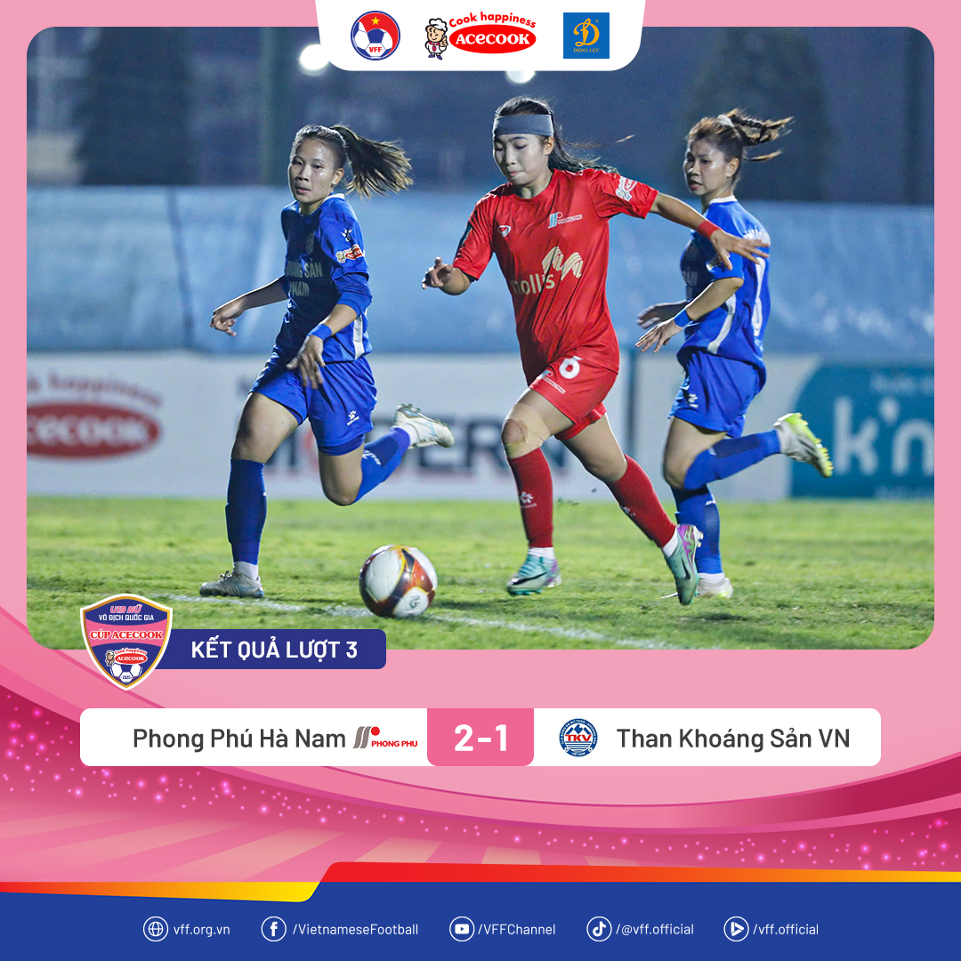 Ở trận đấu muộn lúc 18h, Phong Phú Hà Nam đã giành chiến thắng 2-1 trước Than KSVN, qua đó giành 3 điểm trọn vẹn.
