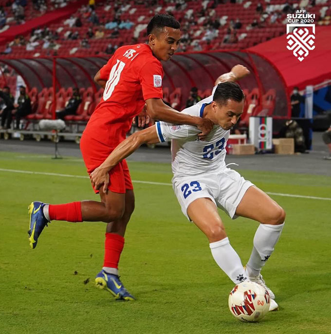 Sau thắng lợi 3-0 trước Myanmar ở lượt mở màn, đội tuyển Singapore duy trì tâm lý hứng khởi khi gặp Philippines. Xuyên suốt hiệp 1, Singapore kiểm soát bóng tới 55%, dứt điểm 6 lần và có 2 tình huống làm chao đảo cầu môn Philippines. Đơn cử sau pha dứt điểm khó chịu của bản thân đúng 3 phút, Quak phối hợp 1 chạm rất nhuyễn với đồng đội trước khi tung cú cứa lòng làm thủ môn Kevin Ray Hansen vã mồ hôi. Tới phút 20, đội chủ nhà lại được hưởng quả đá phạt ở cự ly 18 mét. Đáng tiếc Ikhsan Fandi lại không thể tận dụng cơ hội để chuyển hoá thành bàn.