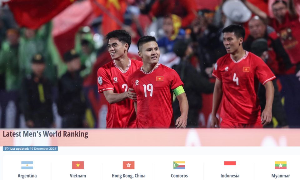 Đội tuyển Việt Nam tăng 2 bậc, khép lại năm 2024 ở vị trí 114 thế giới