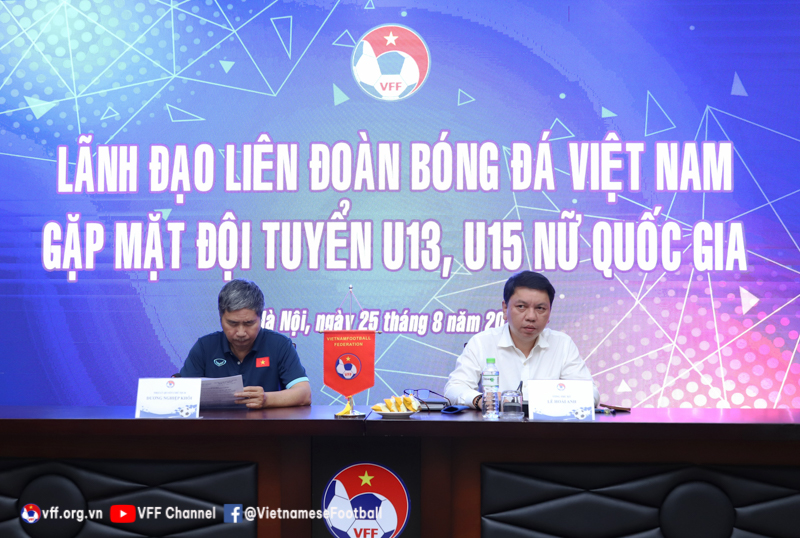 Sáng nay (25/8), ông Lê Hoài Anh – Tổng Thư ký Liên đoàn Bóng đá Việt Nam (LĐBĐVN) đã gặp mặt các cầu thủ thuộc hai đội tuyển nữ U13 và U15, sau hơn 1 tuần tập trung tại Trung tâm Đào tạo Bóng đá trẻ Việt Nam.