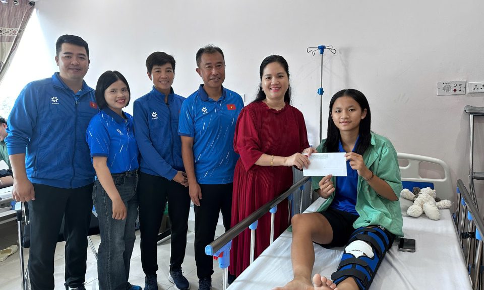 Sáng nay (28/10), Phó Tổng Thư ký Liên đoàn Bóng đá Việt Nam (LĐBĐVN) Nguyễn Thanh Hà cùng HLV trưởng các đội tuyển nữ trẻ Việt Nam – ông Okiyama Masahiko, đại diện thành viên ban huấn luyện và đại diện phòng chức năng của LĐBĐVN đã đến thăm, động viên hai cầu thủ Nguyễn Vân Anh và Nguyễn Thị Thủy – thành viên Đội tuyển U16 Nữ Quốc gia đang điều trị chấn thương tại Bệnh viện Thể thao Việt Nam.