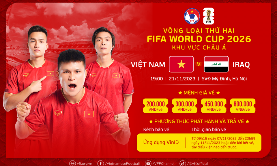 THÔNG BÁO BÁN VÉ TRẬN ĐẤU GIỮA ĐỘI TUYỂN VIỆT NAM vs ĐỘI TUYỂN IRAQ TẠI VÒNG LOẠI THỨ HAI FIFA WORLD CUP 2026