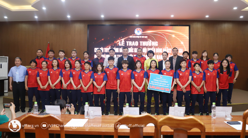 Chiều 23/5, LĐBĐVN đã tổ chức lễ trao thưởng cho ĐT nữ quốc gia và U22 quốc gia thi đấu đạt thành tích tại SEA Games 32.