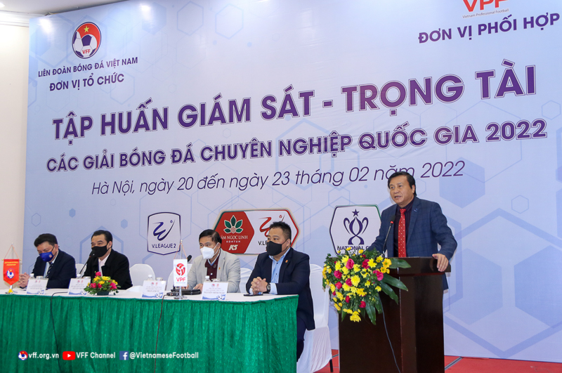 Sáng nay (20/2), chương trình tập huấn giám sát, trọng tài các giải bóng đá chuyên nghiệp quốc gia 2022 do LĐBĐ Việt Nam (VFF) phối hợp với Công ty Cổ phần bóng đá chuyên nghiệp Việt Nam (VPF) tổ chức đã khai giảng tại Hà Nội.