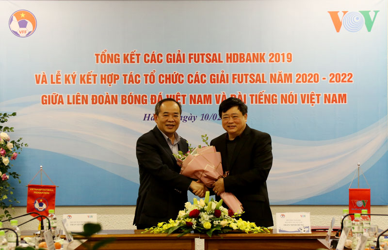 Dựa trên những kết quả đạt được trong 3 năm 2017-2019, hôm nay tại trụ sở LĐBĐVN đã diễn ra lễ tổng kết các giải Futsal Quốc gia và ký kết hợp tác giai đoạn 2020-2022 giữa LĐBĐVN và Đài Tiếng nói Việt Nam (VOV).
