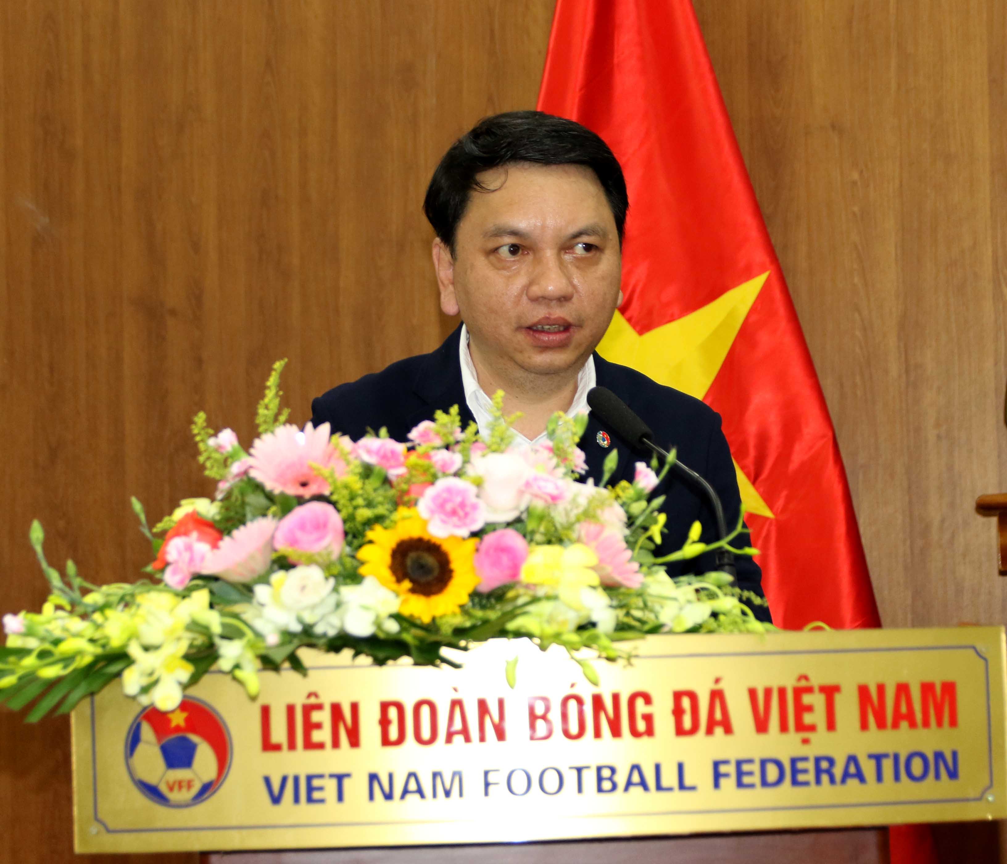 Tổng thư ký LĐBĐVN Lê Hoài Anh phát biểu tại lễ bế mạc giải bóng đá giao hữu VFF 2021