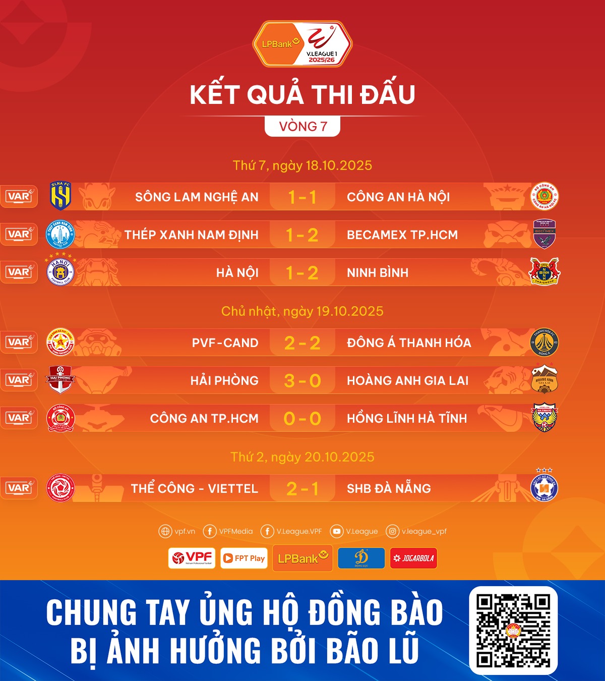 Kết quả thi đấu vòng 7 LPBank V.League 1-2025/26 21/10/2025 08:57:54 Bóng đá nam Giải Vô địch Quốc gia (V.League 1) Lịch thi đấuTin liên quan Kết quả thi đấu vòng 6 LPBank V.League 1-2025/26 Kết quả thi đấu vòng 5 LPBank V.League 1-2025/26 Kết quả thi đấu vòng 4 LPBank V.League 1-2025/26 Kết quả thi đấu Vòng 3 LPBank V.League 1-2025/26 Kết quả thi đấu vòng 2 LPBank V.League 1- 2025/26