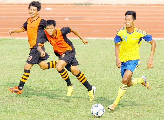 | Trận đấu giữa Vĩnh Long gặp Cà Mau trên sân vận động Vĩnh Long. Ảnh: Dương Thu |