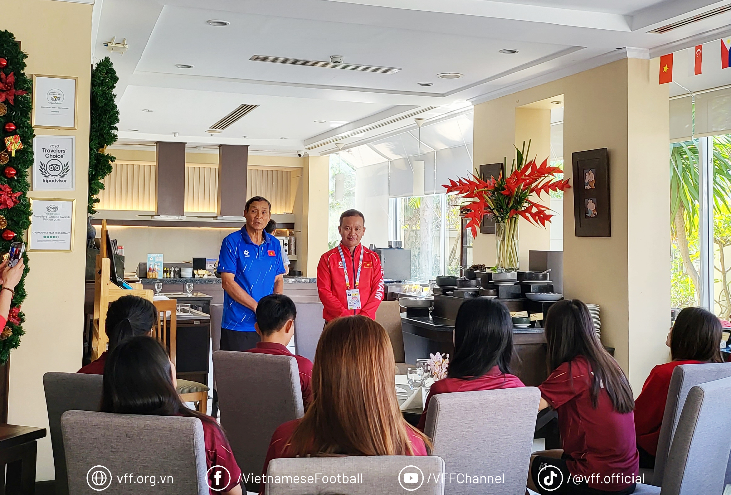 Lãnh đạo đoàn thể thao Việt Nam thăm và động viên ĐT nữ Quốc gia trước trận đấu quyết định với Myanmar