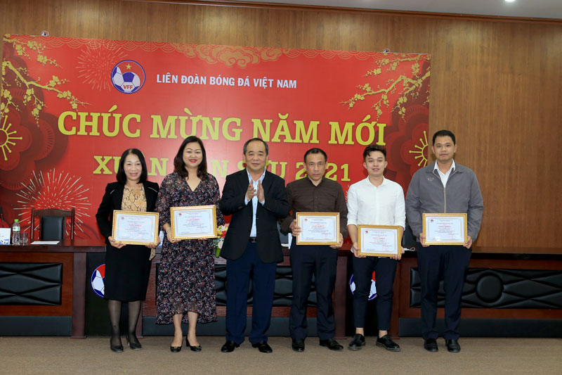 Nhân dịp gặp mặt toàn thể cơ quan LĐBĐVN và các đơn vị trực thuộc, Chủ tịch LĐBĐVN Lê Khánh Hải, Phó Chủ tịch thường trực Trần Quốc Tuấn, Phó Chủ tịch Lê Văn Thành và Tổng Thư ký Lê Hoài Anh đã đại diện lãnh đạo LĐBĐVN trao giấy khen cho các tập thể, cá nhân đạt thành tích xuất sắc trong năm 2020. Thay mặt Thường trực BCH LĐBĐVN, ông Lê Khánh Hải cũng trao quyết định bổ nhiệm ông Vũ Khắc Sơn – Trưởng Ban Điện tử trong nước giữ chức vụ Phó Tổng biên tập Tạp chí Bóng đá kể từ ngày 1/2/2021; trao Kỷ niệm chương cho hai nhân viên Văn phòng LĐBĐVN gồm ông Nguyễn Đình Sơn và bà Nguyễn Thị Ánh Tuyết nhằm ghi nhận những đóng góp của ông Nguyễn Đình Sơn và bà Nguyễn Thị Ánh Tuyết trong nhiều năm công tác tại cơ quan LĐBĐVN trước khi được về nghỉ theo chế độ.