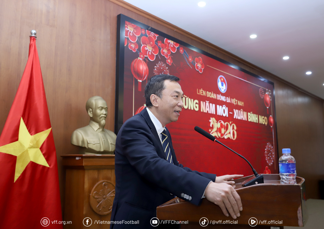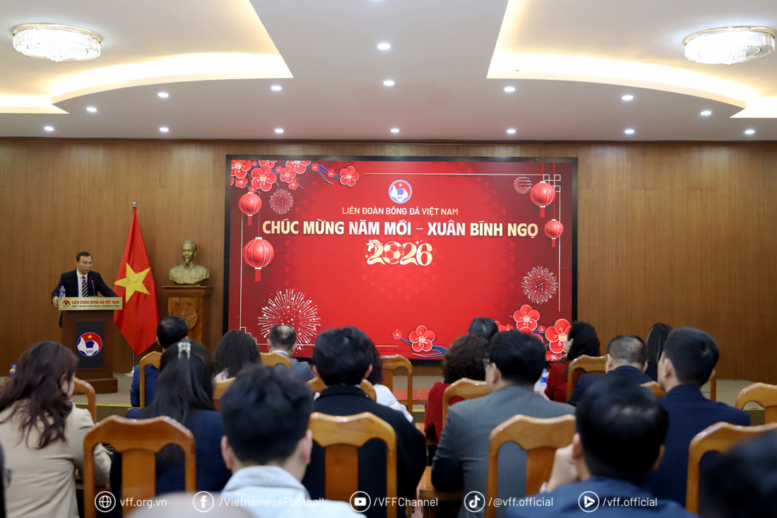 Phát biểu tại buổi gặp mặt, Chủ tịch LĐBĐVN Trần Quốc Tuấn gửi lời chúc sức khỏe, chúc mừng năm mới tới toàn thể cán bộ, nhân viên, đồng thời ghi nhận và cảm ơn những nỗ lực, đóng góp của tập thể cơ quan trong bối cảnh bóng đá Việt Nam phải đối mặt với nhiều yêu cầu và thách thức mới. Chủ tịch Trần Quốc Tuấn nhấn mạnh tầm quan trọng của việc xây dựng một tập thể chuyên nghiệp, đoàn kết, sáng tạo và có tinh thần trách nhiệm cao, coi đây là nền tảng để duy trì và phát triển vị thế của bóng đá nước nhà. Chủ tịch Trần Quốc Tuấn cũng lưu ý đội ngũ cán bộ, nhân viên cần giữ vững kỷ cương, trách nhiệm trong công việc, đặc biệt là chuẩn bị chu đáo cho các giải đấu và nhiệm vụ quốc tế quan trọng sắp tới, đồng thời khẳng định sự quan tâm sát sao của Liên đoàn đối với đời sống người lao động cũng như các đội tuyển quốc gia đang làm nhiệm vụ.