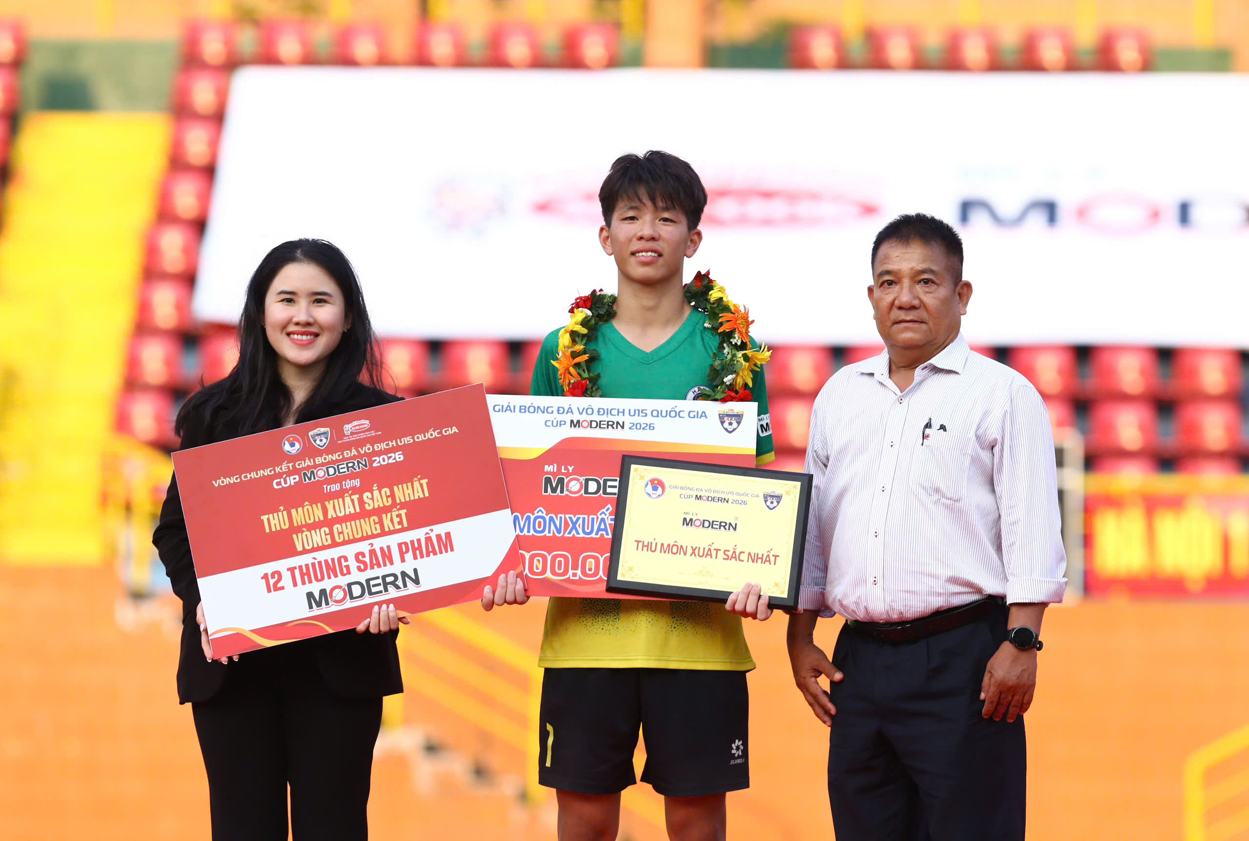 Ngay sau trận chung kết Giải U15 Quốc gia – Cúp Modern 2026, Lễ bế mạc và trao giải đã được tổ chức trang trọng tại SVĐ Thành Long, TP. Hồ Chí Minh, khép lại một mùa giải giàu cảm xúc và chất lượng chuyên môn cao.