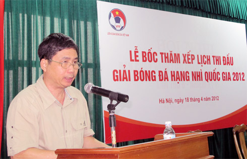 PCT Nguyễn Lân Trung phát biểu tại lễ bốc thăm xếp lịch thi đấu giải bóng đá Hạng Nhì QG năm 2012. |