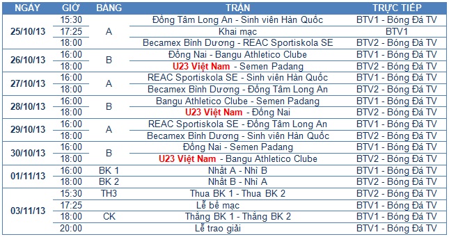 Lịch thi đấu BTV Cup 2013