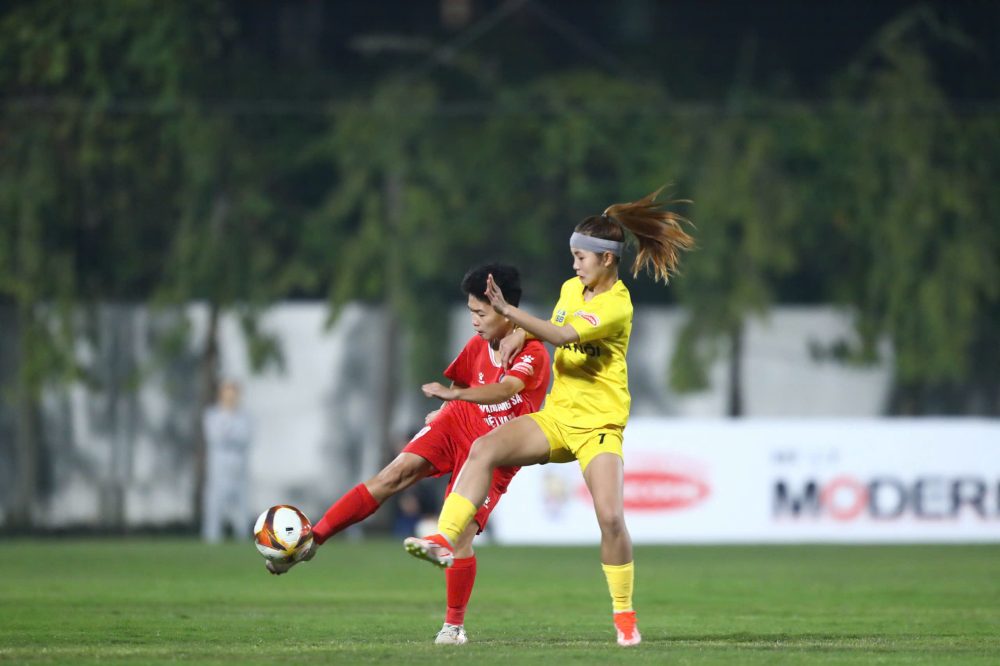 Bàn thắng giúp trận đấu diễn ra sôi nổi hơn. Phút 34, tuyển thủ U19 Quốc gia Lê Thị Trang ghi bàn gỡ hòa 1-1 cho Hà Nội, đưa trận đấu trở lại vạch xuất phát trước khi hai đội bước vào giờ nghỉ.