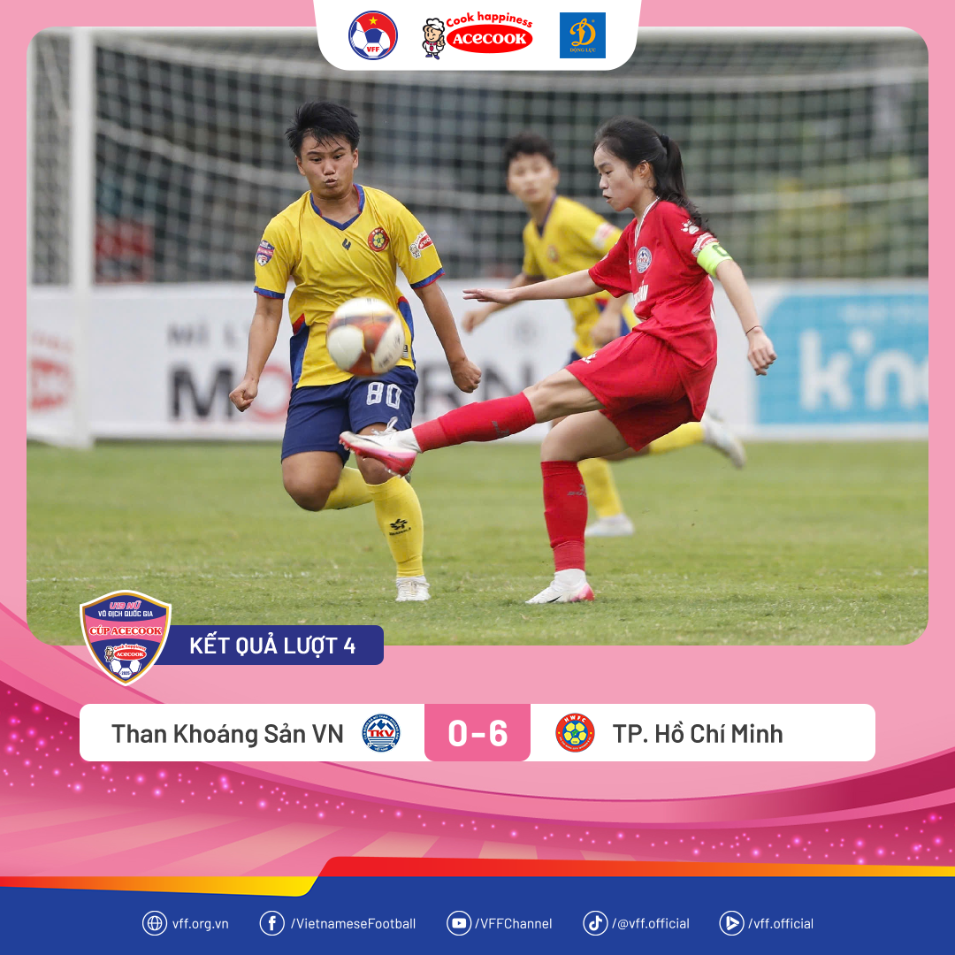 TP.HCM thi đấu ấn tượng và thắng đậm Than Khoáng Sản Việt Nam (Than KSVN) ở lượt 4 giải bóng đá nữ vô địch U19 Quốc gia – cúp Acecook 2026.