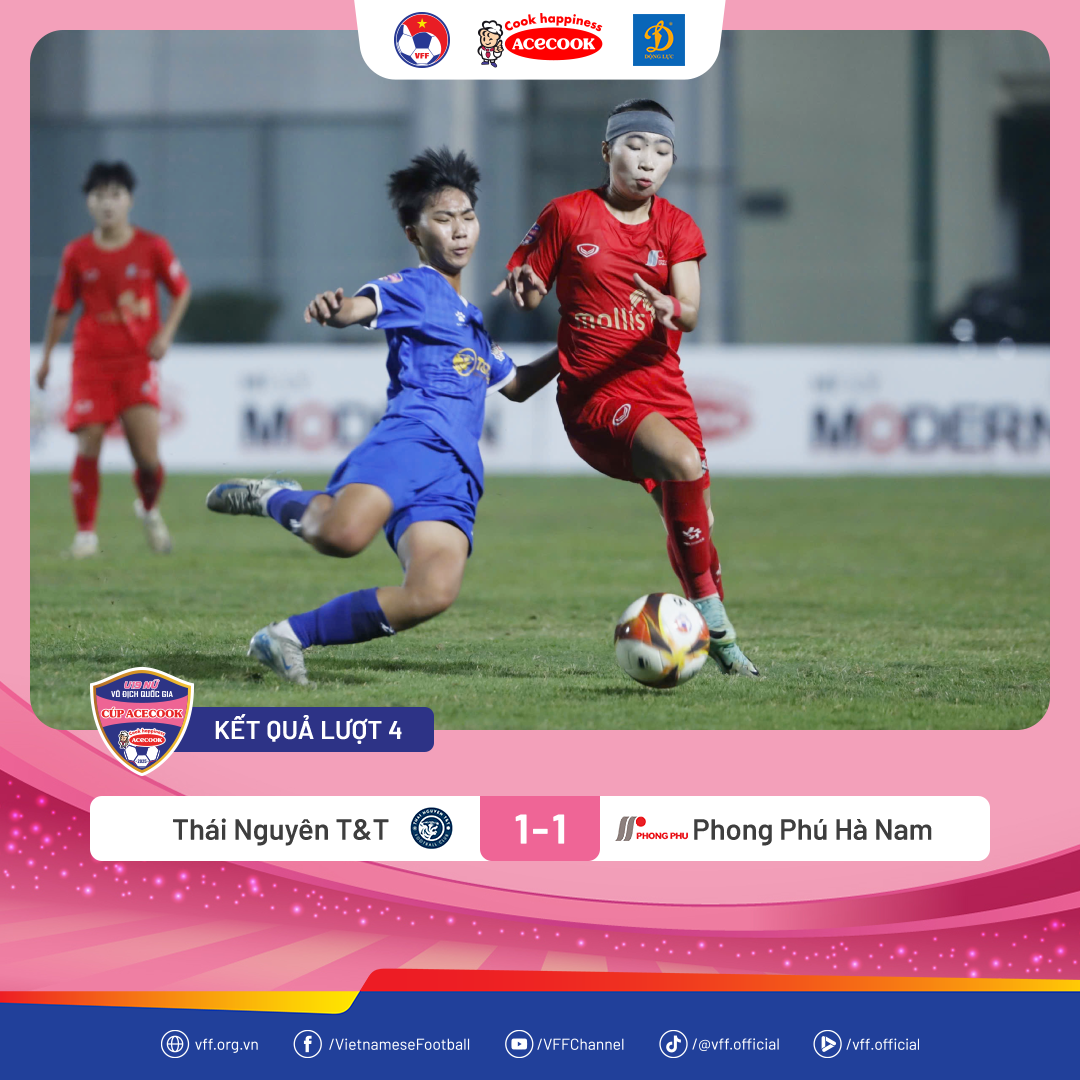 Ở trận đấu lúc 18h cùng ngày, Thái Nguyên T&T cầm hòa Phong Phú Hà Nam với tỉ số 1-1, qua đó cùng chia nhau 1 điểm.