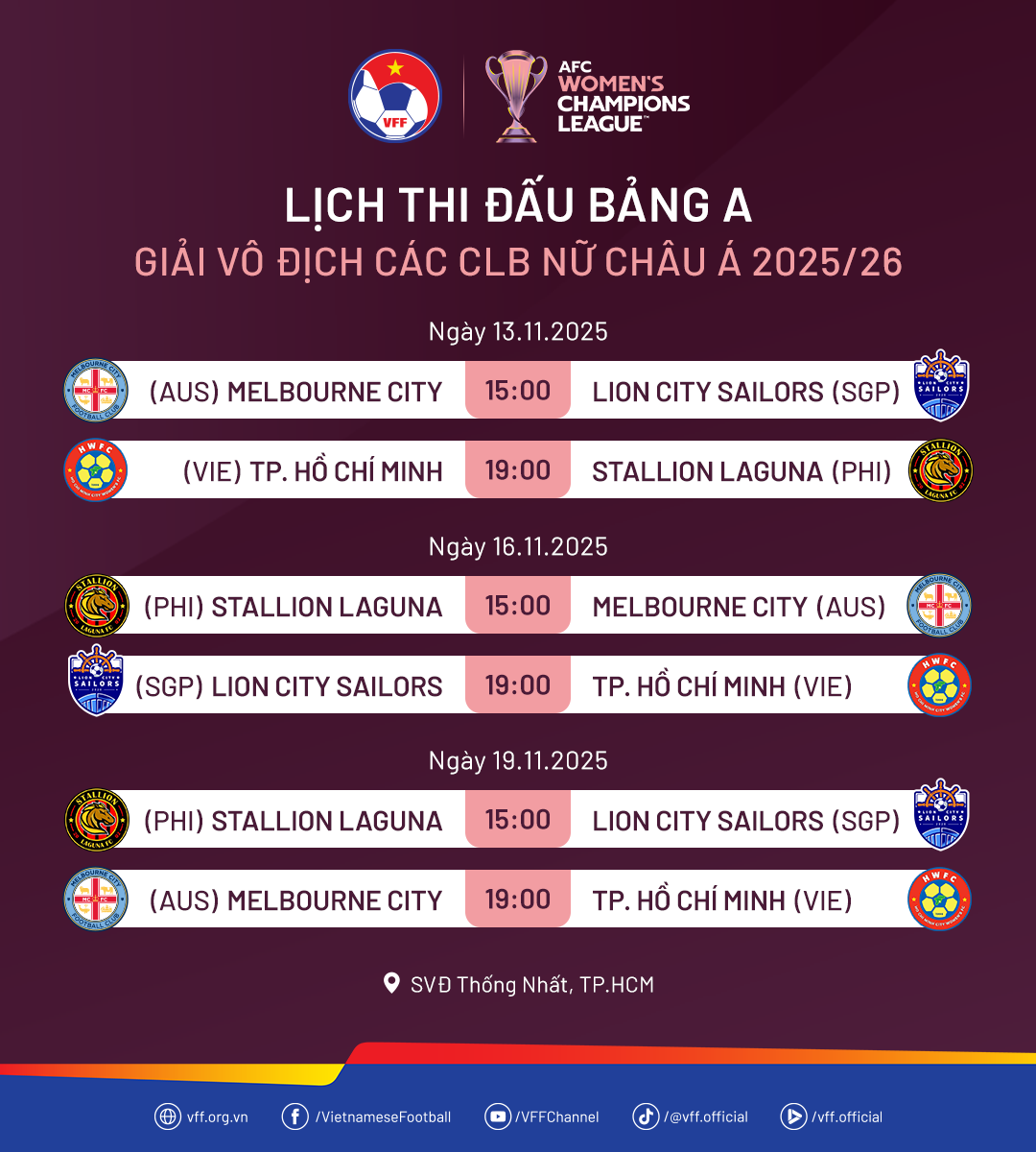Theo kế hoạch, từ ngày 13/1/2025 đến 19/1/2025 trên SVĐ Thống Nhất (TPHCM) sẽ diễn ra các trận đấu trong khuôn khổ bảng A Giải CLB Nữ châu Á 2025/26. Phòng Truyền thông LĐBĐVN thông báo kế hoạch tiếp nhận đăng ký làm thẻ phóng viên tác nghiệp, cụ thể như sau: