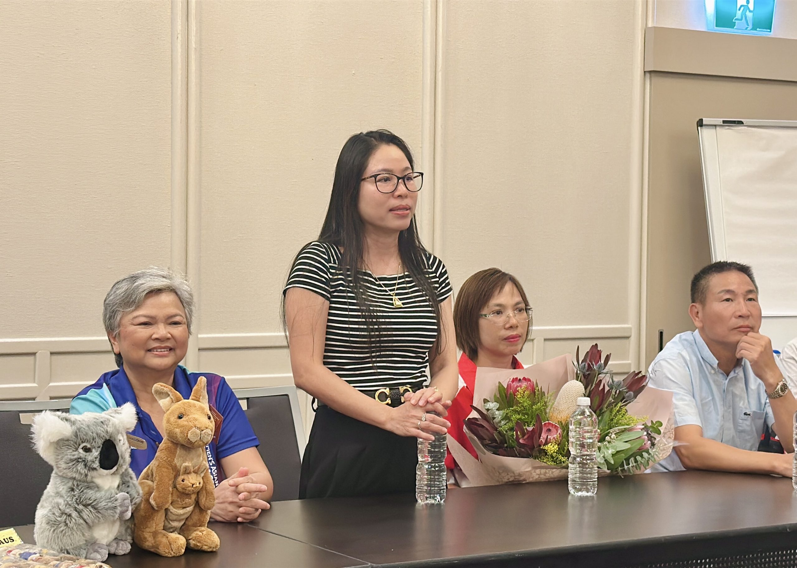 Thay mặt ban huấn luyện, Huấn luyện viên Mai Đức Chung bày tỏ xúc động trước sự quan tâm của Tổng lãnh sự quán và tình cảm của cộng đồng người Việt tại Australia. HLV Mai Đức Chung chia sẻ: “Khi chúng tôi đi xa Tổ quốc đến nước bạn thi đấu và rất cảm động vì nhận được sự quan tâm, động viên của Tổng Lãnh sự quán cùng bà con kiều bào tại thành phố Perth, đặc biệt đúng vào dịp Quốc tế Phụ nữ 8/3. Sự cổ vũ nhiệt tình của cộng đồng và người hâm mộ đã tiếp thêm rất nhiều động lực cho các cầu thủ. Toàn đội sẽ tiếp tục chuẩn bị thật tốt về chuyên môn và tinh thần để bước vào trận đấu sắp tới với quyết tâm cao nhất, thi đấu hết mình vì màu cờ sắc áo, vì tinh thần Việt Nam, tinh thần của phụ nữ Việt Nam”.