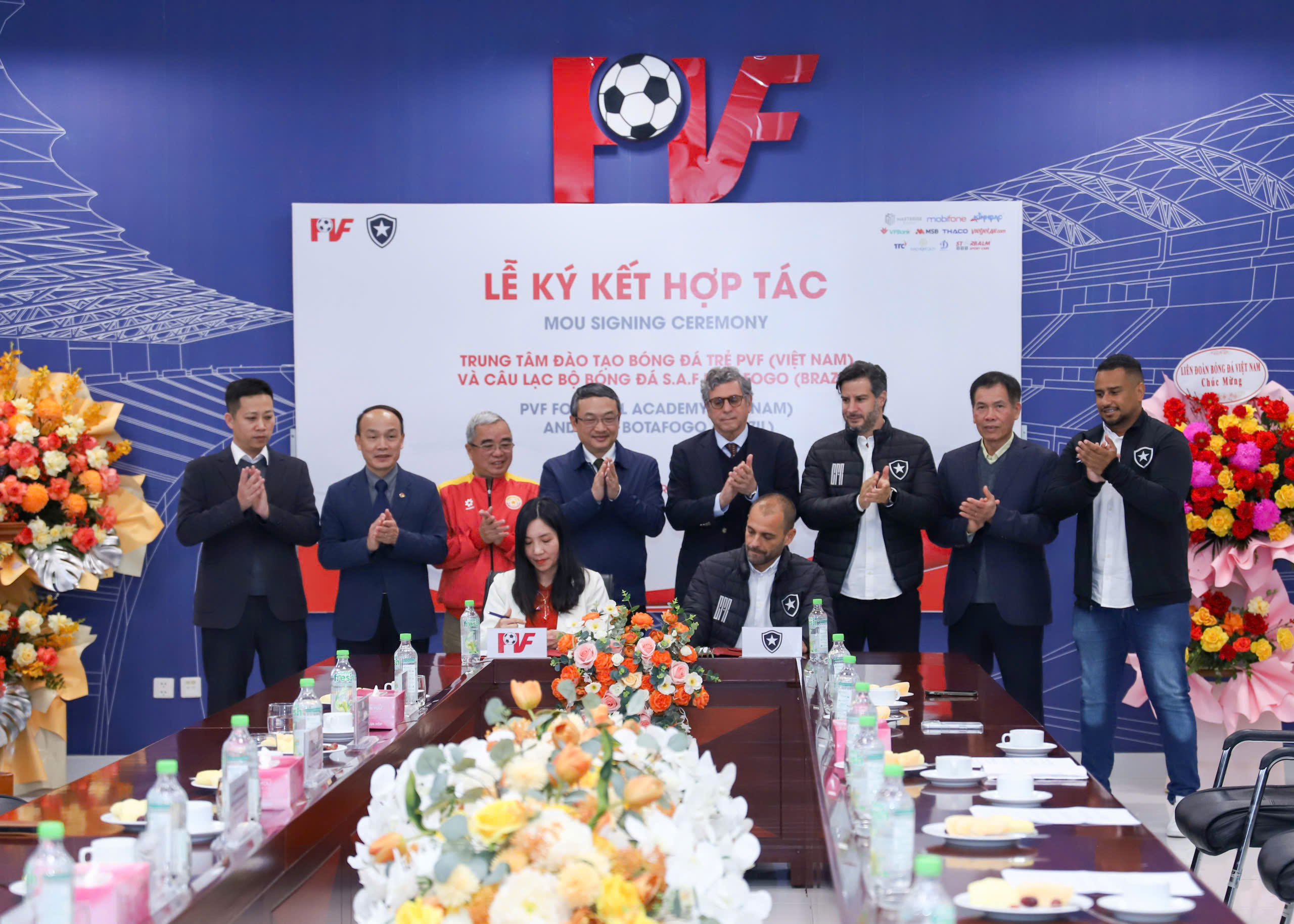 Chiều 24/1/2026 tại Hưng Yên, Trung tâm Đào tạo Bóng đá trẻ PVF – Bộ Công an đã chính thức ký kết Biên bản ghi nhớ hợp tác (MoU) với Câu lạc bộ S.A.F Botafogo (Brazil), hướng tới tăng cường hợp tác trong lĩnh vực đào tạo bóng đá trẻ, phát triển nguồn nhân lực chuyên môn và cầu thủ theo các chuẩn mực quốc tế.
