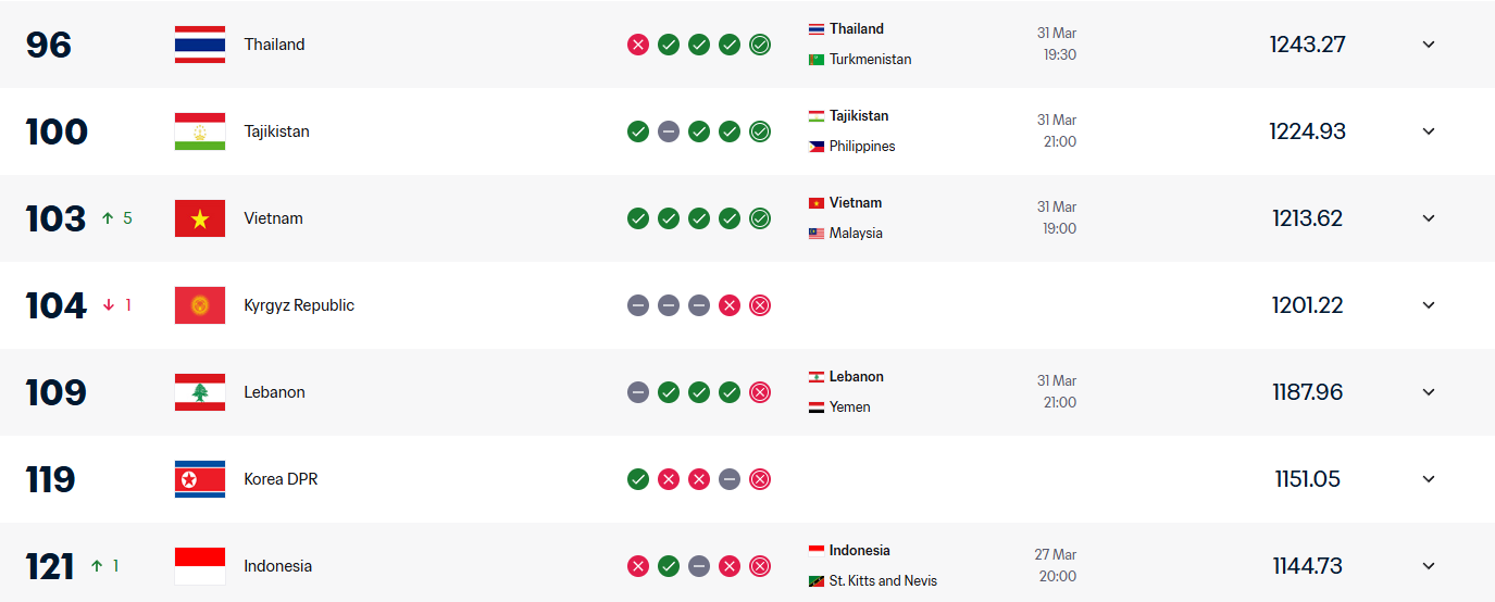 Những kết quả tích cực ở hai trận đấu sắp tới được kỳ vọng sẽ tiếp tục giúp đội tuyển Việt Nam cải thiện vị trí trên bảng xếp hạng FIFA, qua đó sớm trở lại nhóm 100 thế giới.
